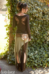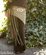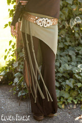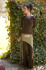 Simple asymmetrical earthy skirt to wear over any of our pants. Great for layering with anything though. Features two braids on the shorter side. This skirt is reversible, so you can wear the braids on either side, depending on your outfit. This piece was inspired by people wanting to add or remove the overskirt that comes on some of our pants. This way, you can get a skirt that is removable - mix and match colors! :)