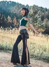 These pants are great to move in. You can tie up the ankles freeing up your feet for dancing, and throw them back down again for the full flared effect. These will be comfortable for as long as you wear them, and will mold to your body.
