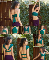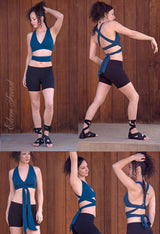 Wear with a strapless dress, racer back tee, or as a top itself. This incredibly versatile piece is easy to figure out and play with, so you can easily wear it in any of the ways shown, or come up with more configurations in a matter of minutes.