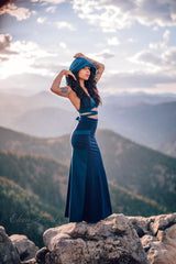 Flattering high waisted maxi skirt with two big rouched pockets, featuring accent colors on the cuff and side panels~ choose your color combination.