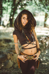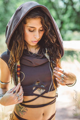 Little crop top, gently off shoulder, with giant cowl hood and front detail cut out ~ or you can wear it in back (its reversible if you want). Perfect for festival season. Also works well layered over a tank dress too. This is our original design.
