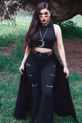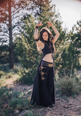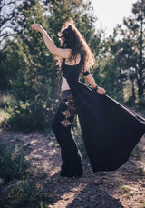 ✥ We have had a few customers ask to add length to the crop part of it. It really looks best as a crop top, so we reccommend wearing with with high waisted pants instead. Shown in the last photo. Looks devastating with both pants and shorts, or even over a mini dress. Perfect festival piece thats both incredibly unique and super comfortable all day long.