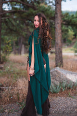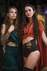 Wing Sleeved Goddess top ~ this one is great for festivals, especially burning man. Its also good for goddess events and shoots. Its gently off shoulder, though you can pull the straps up like a tank if you wish too. Sleeves are generous, and flowing while allowing you full freedom with your arms, as the opening goes all the way up to the shoulder cuff. It has a slimming effect on the hips because of the way it drapes. This also pairs well over a tank dress or with pants.