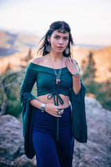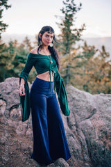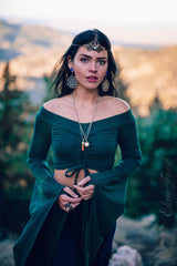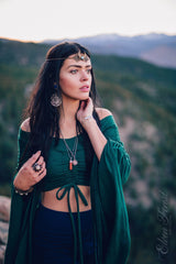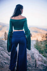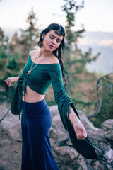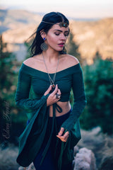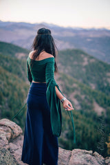 Little crop top, gently off shoulder, with scrunchie in front or back (its reversible if you want the scrunchie in back). Perfect for festival season. Perfect for dressing up in so many kinds of costumes. Perfect for being a goddess. Also looks wonderful layered over a dress too when you want to add sleeves.