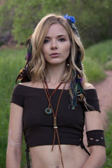Little crop top, gently off shoulder, with lace ups on both sides. Perfect for festival season. Also works well layered over a strappy dress.