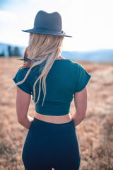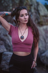 Little crop top, Fits a bit like a bralette, with bust darts for added support and shaping. Large short sleeves have an artistic look to them.