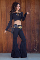 Comfortable and soft, these pants move with you as you walk. They are perfect for yoga, dancing, hooping, and flow arts. We started making these in 2009~ an original design ~ and made from our signature soft fabric :)